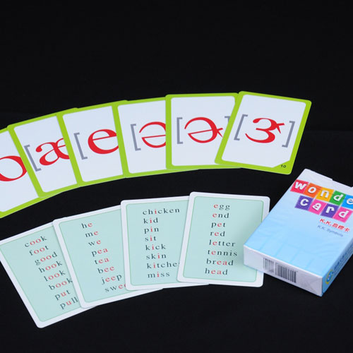 K.K.音標卡攜帶方便,且每張卡的右下角均有數字標示,易於使用及整理。每張音標卡的背面,皆有數個包含該音標的單字,可搭配任何K.K.音標課程或單獨使用,培養學生運用音標讀字的技巧。附有示範教案,可利用簡單的卡牌,變化出各種不同的課堂活動。