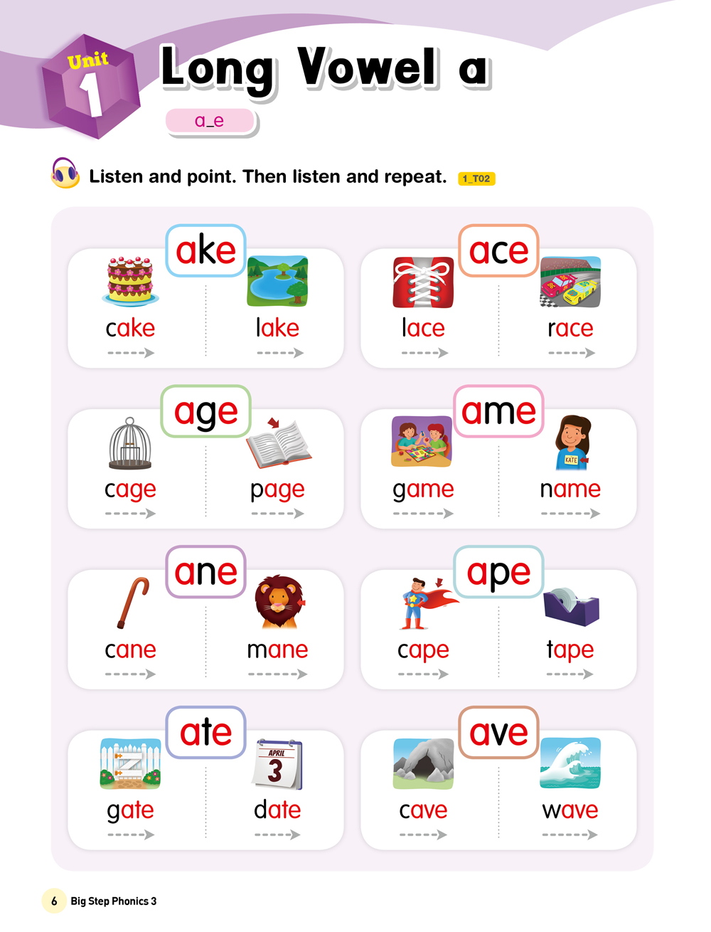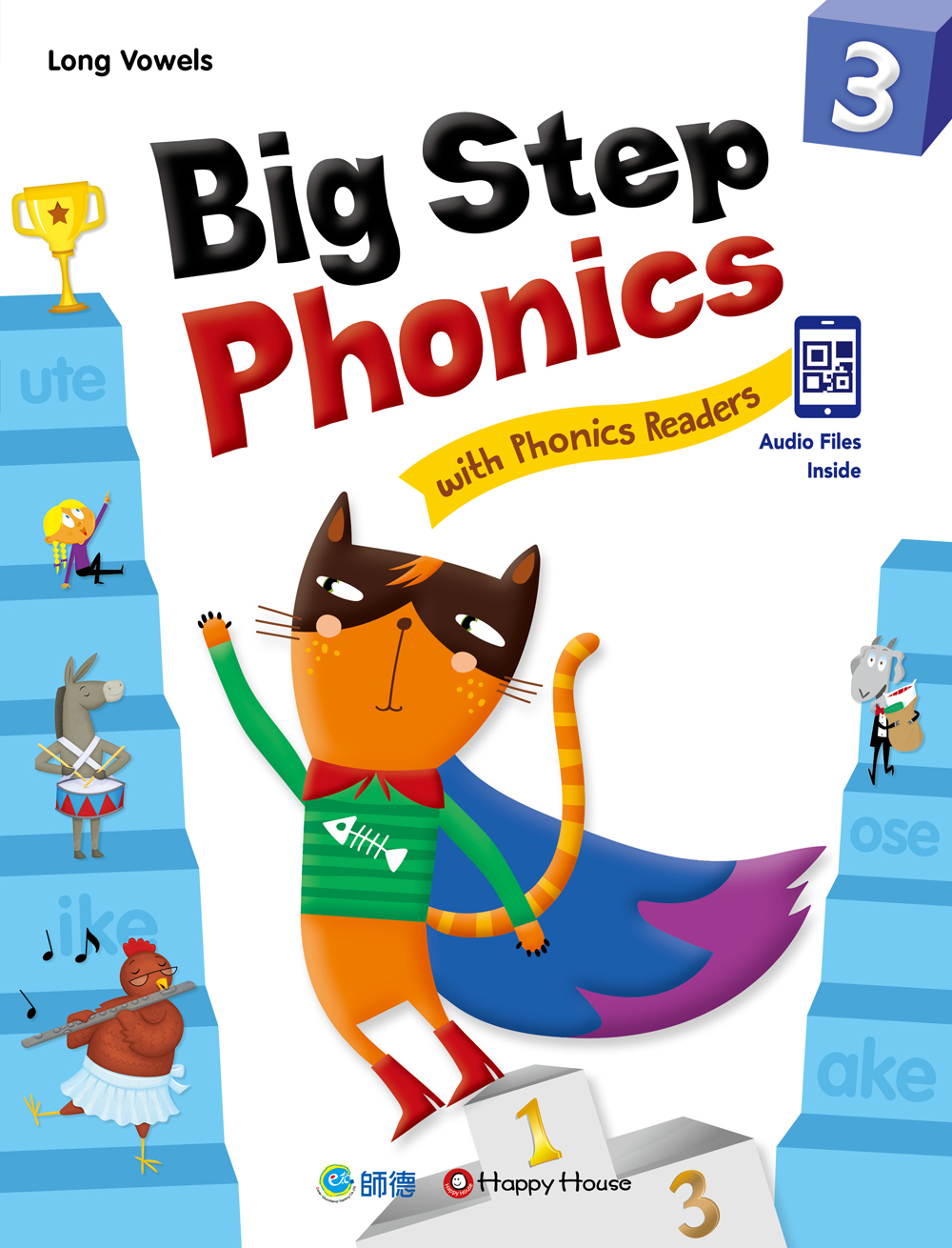 Big Step Phonics with Phonics Readers 系列套書共有四冊,本冊為:Long Vowels。每一冊均含課本+練習本+線上資源,完整學習。