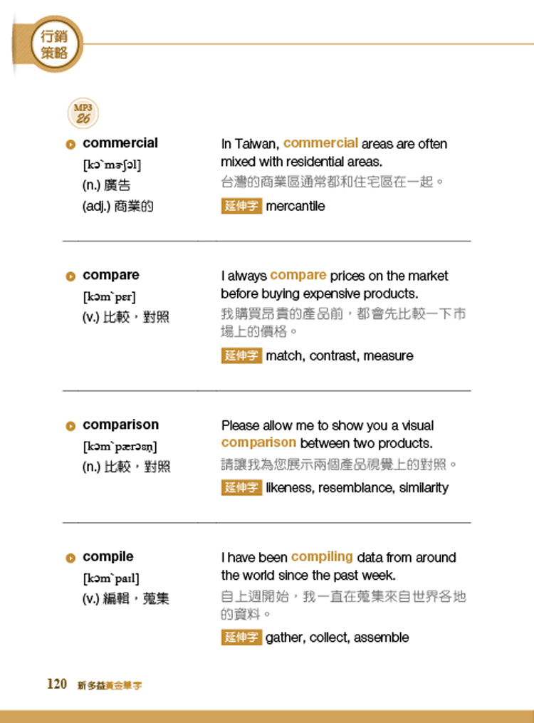 2. 100分鐘黃金單字學習QR CODE音檔:單字例句全部收錄,外籍老師清晰發音,上班途中或會議空檔,隨時隨地學習記憶,聽力測驗必得高分。