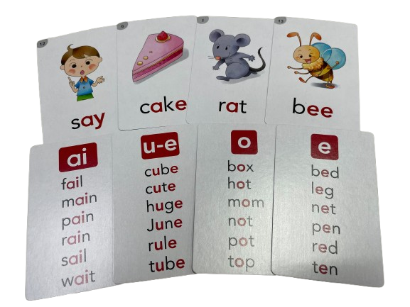 本卡是依據自然發音法所設計,包括 53 個常見的母音(短母音、長母音、複合母音、連接 r 的母音)。協助學生熟悉並掌握單字拼讀的規則,可搭配任何發音教材,或者單獨運用於發音練習活動,讓學生真正做到「看到字就會唸,聽到音就會拼」。