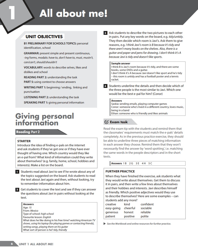 3.教師手冊含可下載資源組合包,內含可下載課程音檔、額外學習單、單元考題、B1 Preliminary for Schools模擬題兩份。
