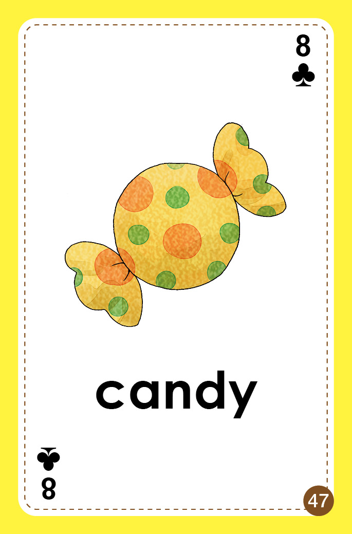 全套共六副單字撲克牌 (A, B, 1, 2, 3, 4),每副單字撲克牌包含 52 張撲克牌單字卡與 2 張鬼牌,卡面上有圖像與單字,讓幼兒透過視覺輔助記憶單字,可搭配 Fun House 課程或單獨使用,培養學生看圖辨字的技巧。