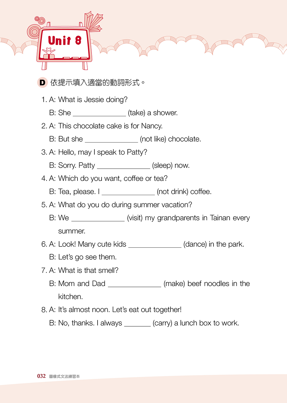 文法變圖像,看圖就學會! 以圖像表格歸納文法重點,讓文法規則簡單化! 以不同題型練習題,確實檢視學習! 本書能有效幫助老師們解決棘手的文法教學問題,並培養學生實際運用的能力。每個單元都有簡單兩步驟的學習規劃: Part A:建立觀念 以圖像表格歸納文法重點。條列式的句型,加上生活化的例句與圖示,幫助學生加深文法的概念。 Part B:實際運用 文法知識的實際運用與整合。透過不同題型的練習題,檢視學習的狀況,延伸文法的深度和廣度。 透過嶄新的的文法學習方式,不但能夠循序漸進地提升學生的文法程度,更能幫助學生奠定穩固的文法基礎,培養全面性的英語實力。
