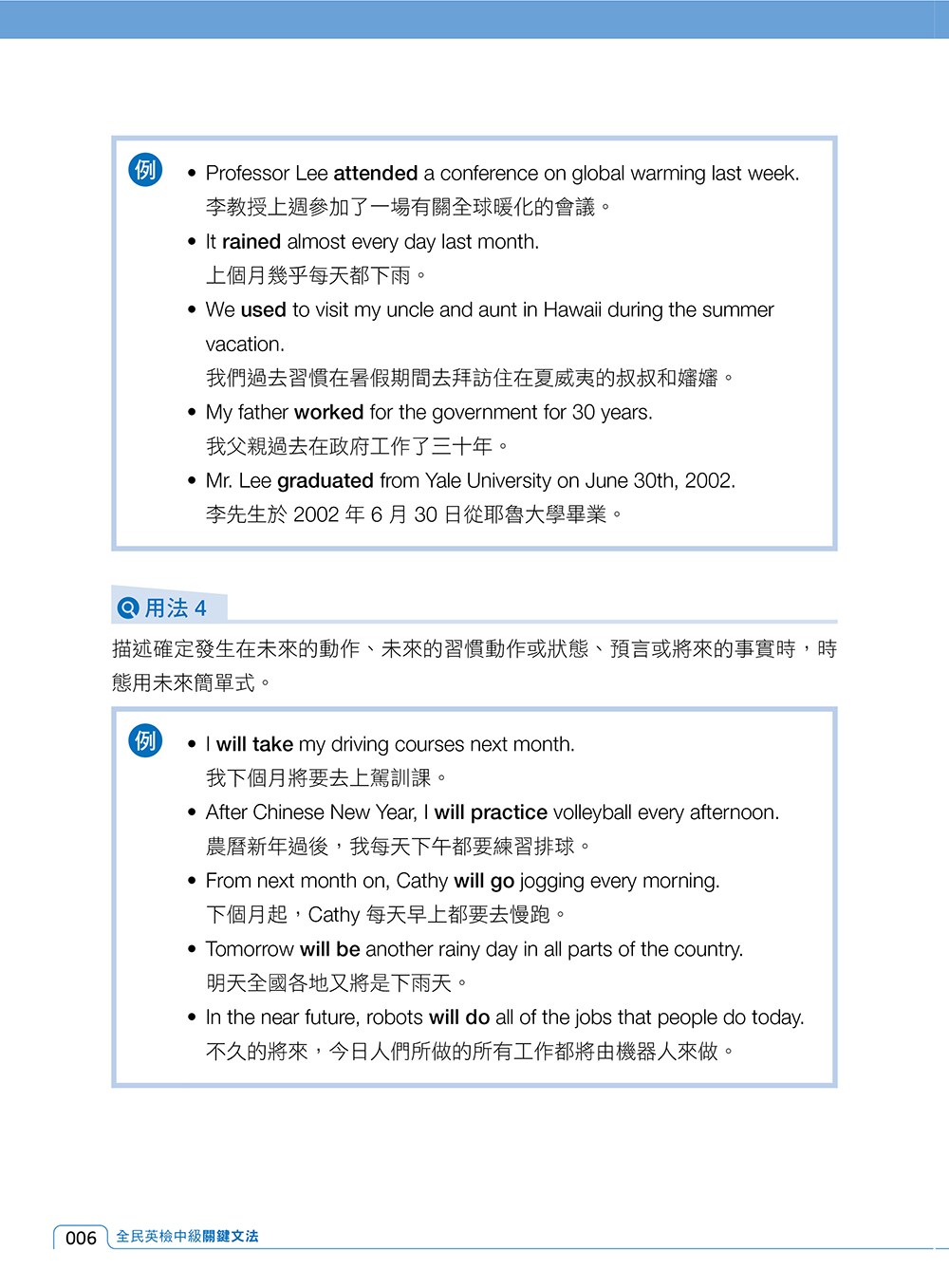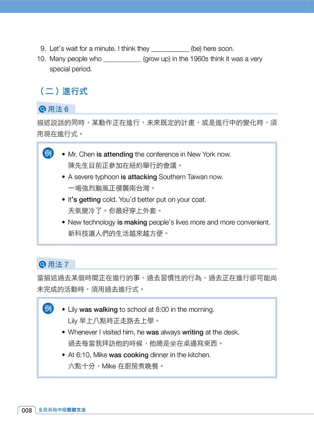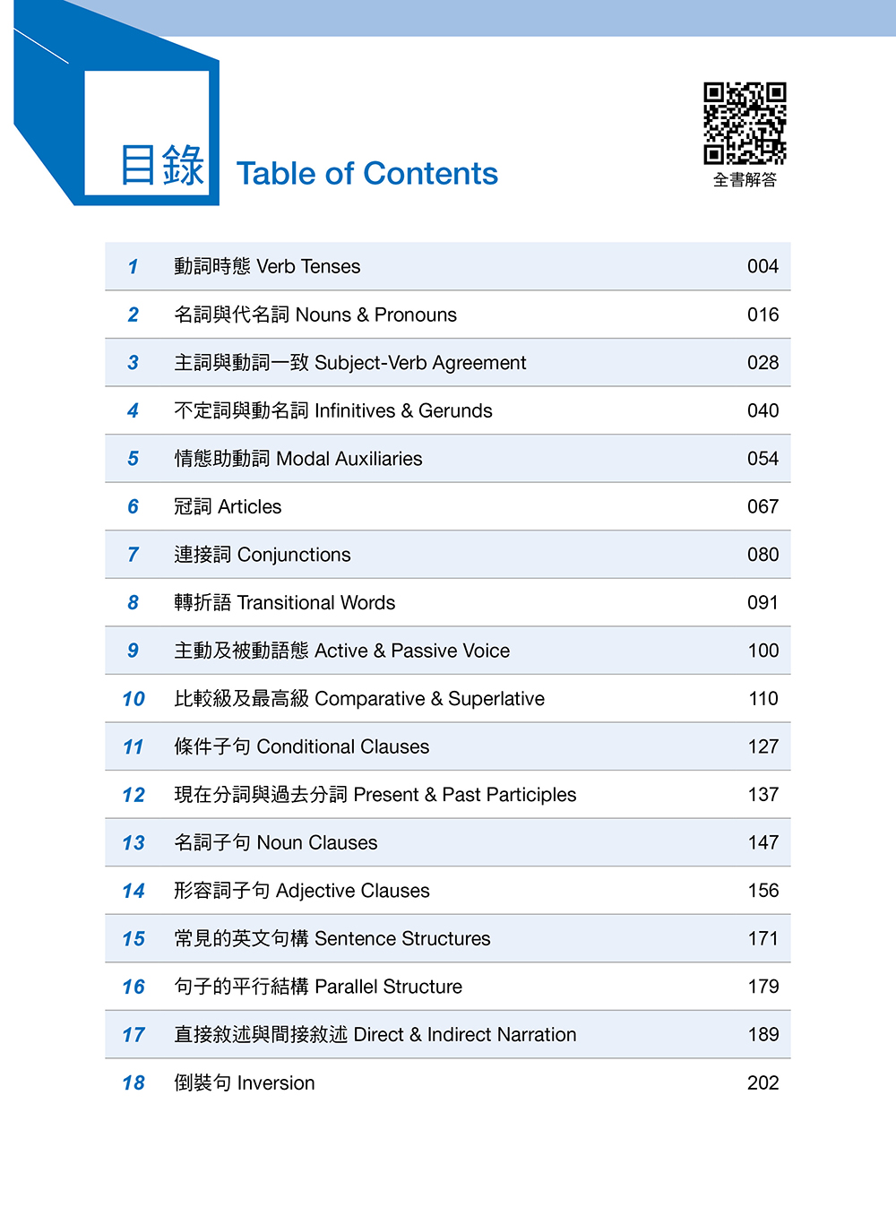 本書統整 18 個全民英檢中級必考的關鍵文法,每項文法重點皆提供實用例句,幫助學生熟悉文法使用時機與句型變化,釐清易錯的文法觀念。各單元練習題型豐富多元,從單句、段落到整篇文章,實際運用學到的文法知識,培養解析英文長篇閱讀的能力,提升英文閱讀速度,深化英檢應考實力。