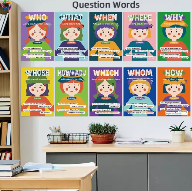 內含常見英語疑問詞: "Who"、"What"、"Where"、"Why"、"When"等,