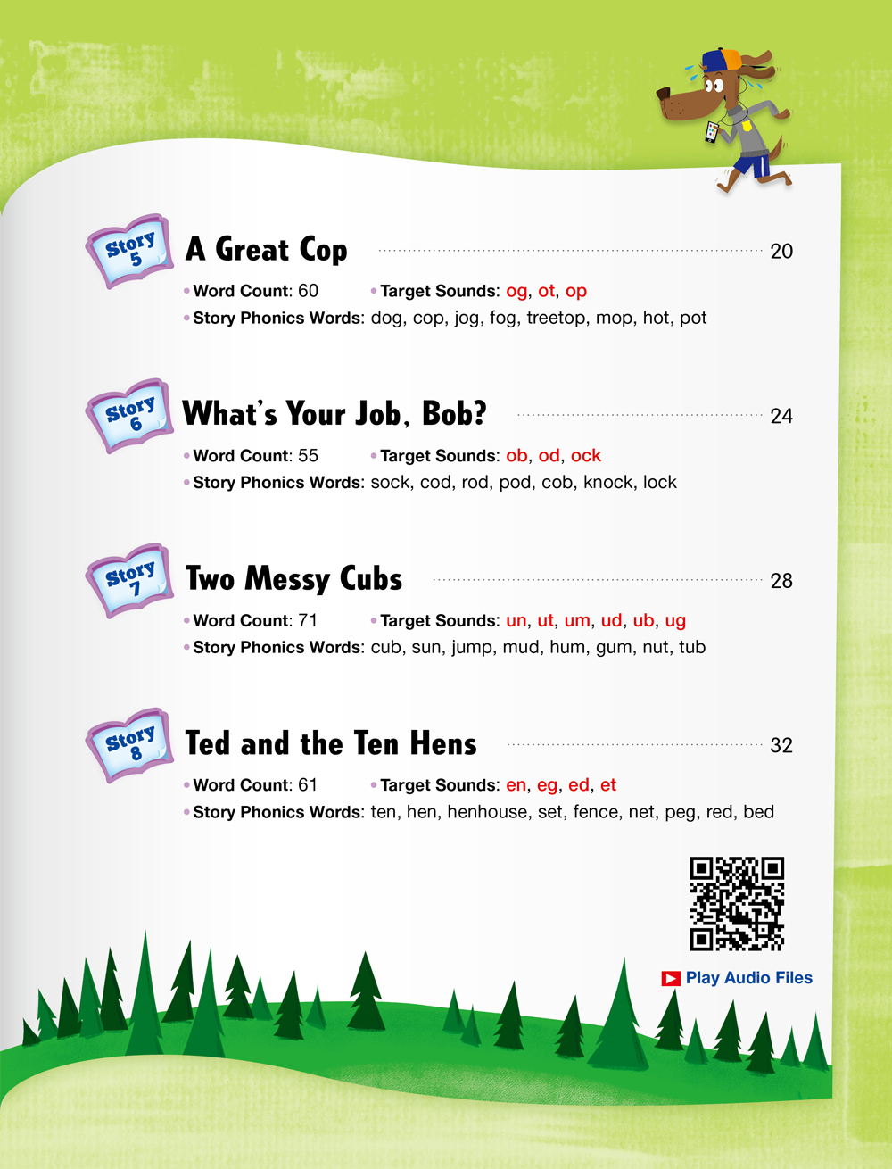 1. 故事生動活潑:有趣的短篇故事幫孩子學英文字母與發音規則。