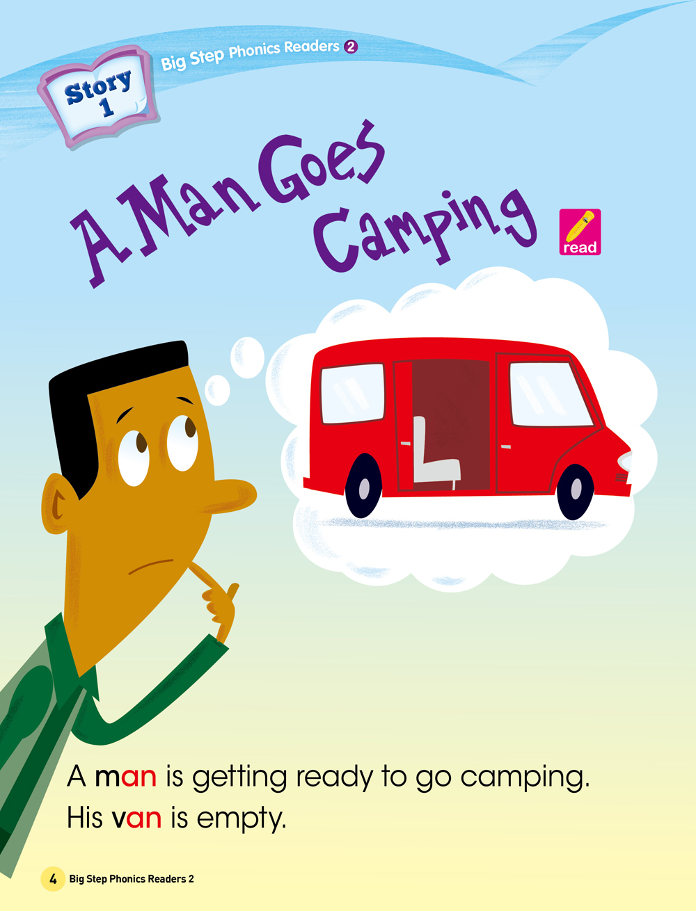 Big Step Phonics Readers 系列套書共有四冊,每冊都有 8 個短篇小故事,可搭配 Big Step Phonics 套書單元學習發音規則,有趣內容和活潑插圖讓孩子能自然而然學會英文發音,並發展基礎閱讀能力、習得英文字彙。