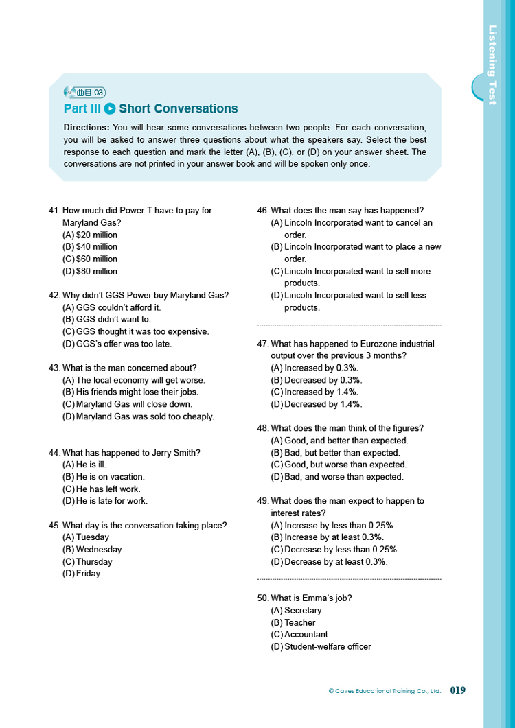 首頁 新多益全真題庫(5回模擬試題1本+詳細解析1本+MP3+防水書套) ISBN:978-972-0162-03-8 產品編號:TP203 規格:全二冊+一片MP3 作者:師德文教(股)公司 適用對象: 會員價: $539 元 定價 $599 元 9 折 加入購物車 加入追蹤 庫存: 0