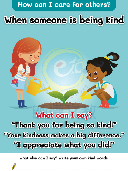 並搭配What can I say提示句,幫助學生學習用語言與行動關懷他人