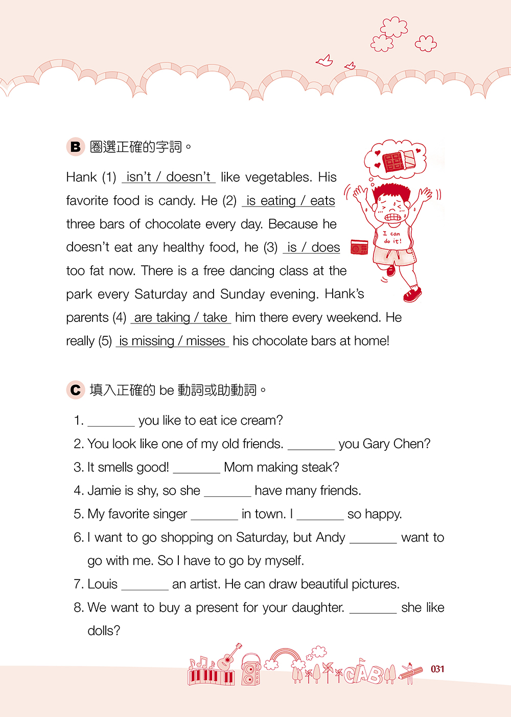 文法變圖像,看圖就學會! 以圖像表格歸納文法重點,讓文法規則簡單化! 以不同題型練習題,確實檢視學習! 本書能有效幫助老師們解決棘手的文法教學問題,並培養學生實際運用的能力。每個單元都有簡單兩步驟的學習規劃: Part A:建立觀念 以圖像表格歸納文法重點。條列式的句型,加上生活化的例句與圖示,幫助學生加深文法的概念。 Part B:實際運用 文法知識的實際運用與整合。透過不同題型的練習題,檢視學習的狀況,延伸文法的深度和廣度。 透過嶄新的的文法學習方式,不但能夠循序漸進地提升學生的文法程度,更能幫助學生奠定穩固的文法基礎,培養全面性的英語實力。