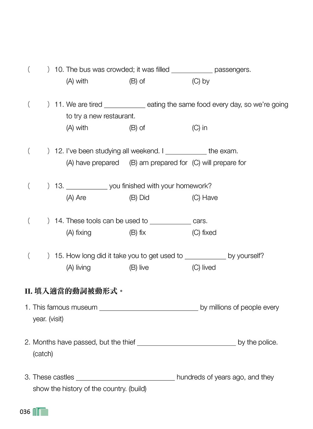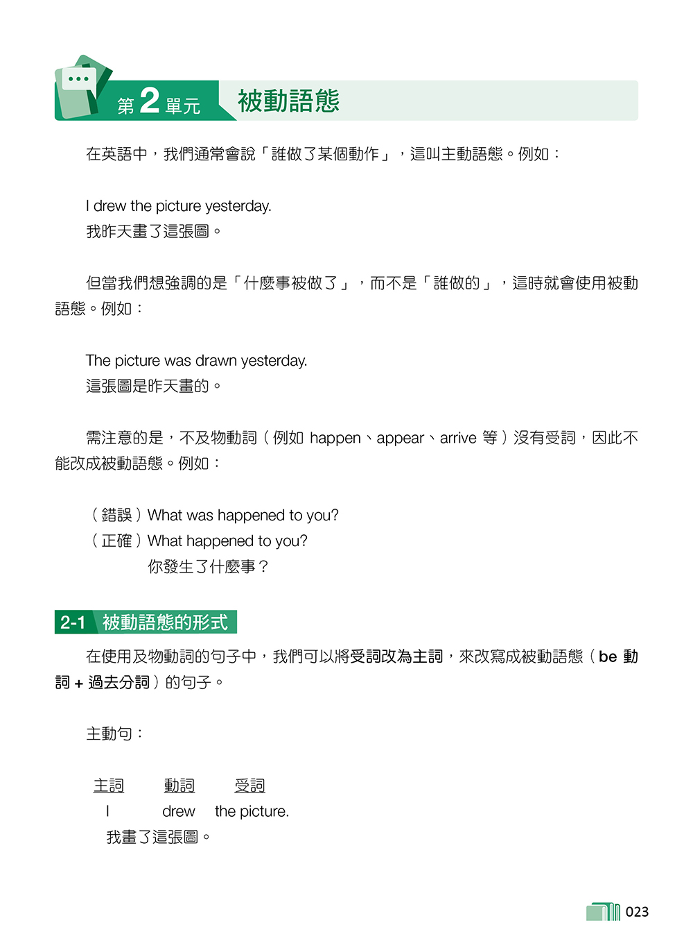 本書目錄 第 1 單元 現在完成式 第 2 單元 被動語態 第 3 單元 動詞變形容詞:V-ing 與 V-ed 的區別 第 4 單元 名詞的後位修飾:介詞片語和形容詞子句(一) 第 5 單元 名詞的後位修飾:形容詞子句(二) 第 6 單元 表示程度的句型 第 7 單元 名詞子句 第 8 單元 對稱式句型 第 9 單元 附和句、附加問句和感嘆句